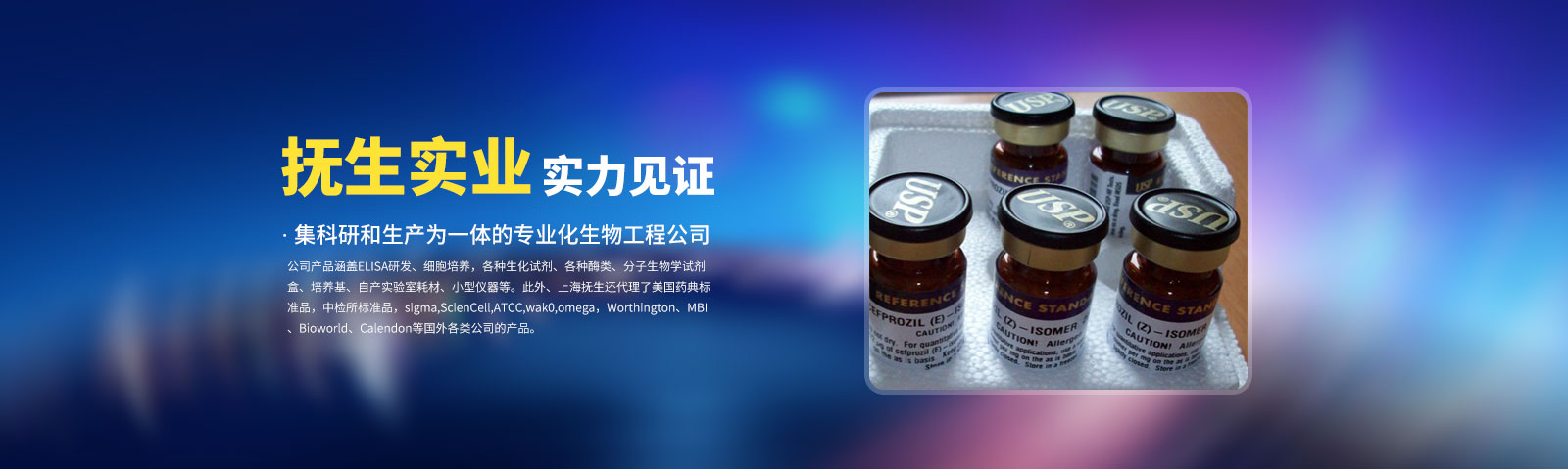 上海撫生實業有限公司(ShanghaiFushengIndustrialCo.,Ltd.,China)是一家生物企業,主要從事免疫學、分子生物學和常規生化試劑的銷售。主營產品:生化試劑、試劑盒、ELISA試劑盒、抗體、重組蛋白、生化檢測試劑盒、分光光度法檢測試劑盒、熒光定量PCR檢測試劑盒、細胞株、原代細胞、細胞培養基、標準溶液產品。代理并銷售進口SIGMA試劑、abcam抗體、R&D抗體、CST抗體、ATCC細胞、BD公司、GE公司、賽默飛世爾公司產品。上海撫生實業有限公司(ShanghaiFushengIndustrialCo.,Ltd.,China)先后與天津中醫學院、復旦大學、上海交通大學醫學院、上海交通大學、華東師范大學、第二軍醫大學、南京大學,暨南大學,南京工業大學,曙光醫院、華山醫院、瑞金醫院、上海有機研究所、中科院上海分院等多家單位建立了良好的合作關系。本公司可為您提供科研...